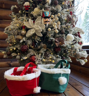 Get ready to sleigh with our Boutique Style Christmas Gift TOTE! Made with velour, these bags are perfect for any special gift, whether it's for mom, dad, or that special someone. They make gifting to teachers or for your neighbor. They're adorned with faux fur around the top and have decorative hanging ball. They have two handles that will make carrying them a breeze. Plus, you have two color choices: Christmas red or Christmas green.