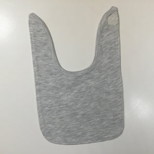 Solid Plain Bibs.  Available in Lt. Heather Gray, Dk. Navy, Slate Blue and White.  Bibs are made of 100 % cotton,  Total Bib size is approx 11" long by 7.5" wide.  Embroidery area is approx 6.75 wide and 5.75" long.  Velcro closure for easy on and off.