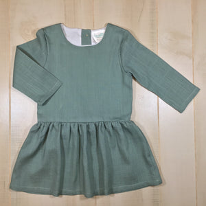 These beautiful linendresses come in three colors, Sage, Mustard and Brown. They will be a staple in your little one's closet. The bodice of the dress (top of dress) is lined to give full coverage. The lining will reduce strain on the clothing, extending the useful life of the garment. The dresses have four buttons on the back for a beautiful detail!