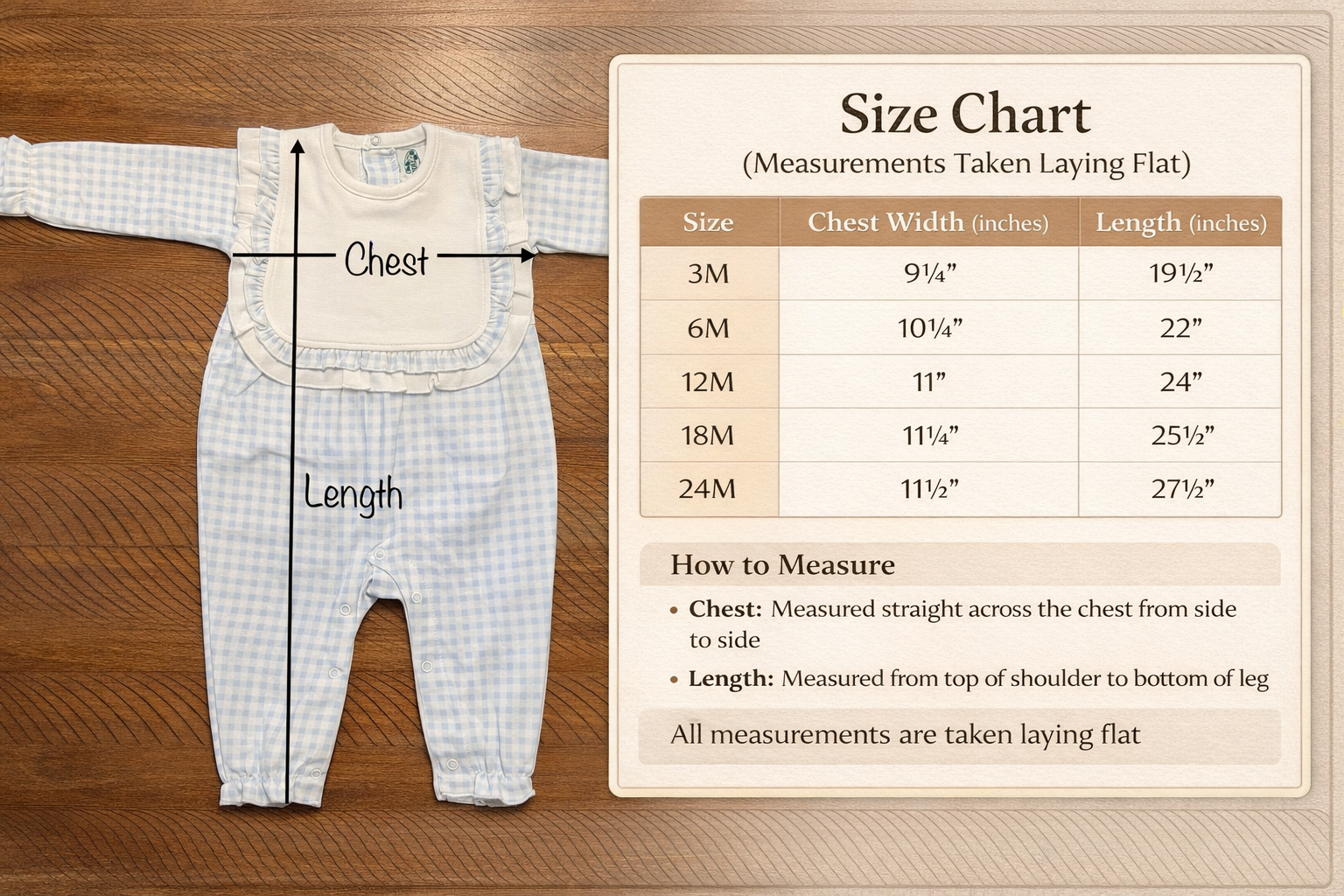 This Romper comes in 3M, 6M, 9M, 12M, 18M and 2T