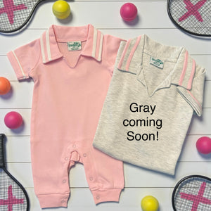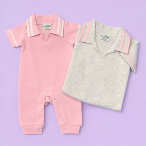 Introducing the Preppy Baby Polo Romper—the ultimate outfit for your little athlete! Crafted from 100% soft cotton, this adorable short-sleeve romper features a classic collar detail and convenient snap closure for quick diaper changes. The smooth front panel is perfectly designed for personalized embroidery, making it ideal for monogramming or custom designs. Whether your baby is cheering from the sidelines at golf tournaments, tennis matches, or pickle ball games with Mom and Dad, this preppy essential delivers style and comfort. Perfect for boutique customization and creating those Instagram-worthy moments!